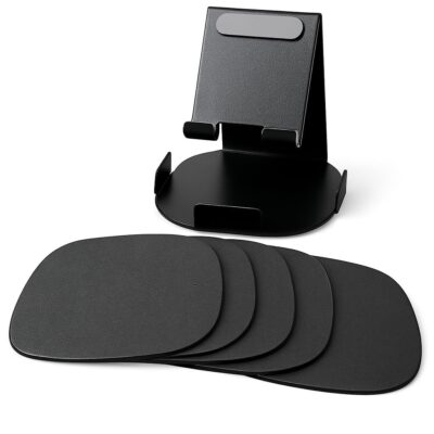 A mobile stand with an integrated coaster set is a multifunctional accessory designed to organize your desk and protect your surfaces.