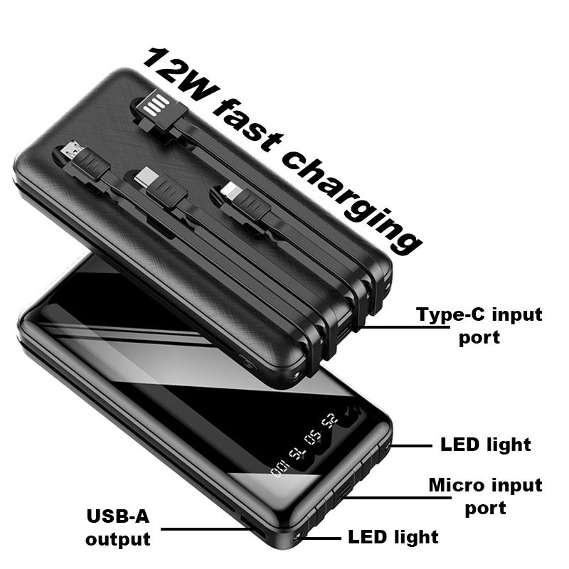 - ✅ Dual Input (Micro/Type-C) – Recharge the power bank quickly and flexibly.
