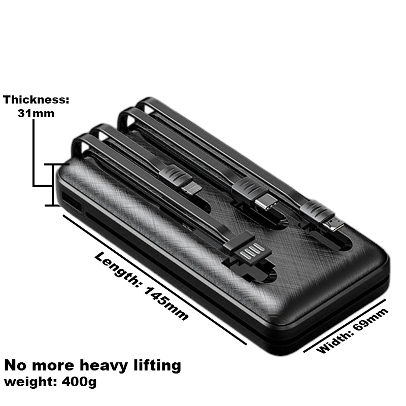 - ✅ 20000mAh Battery Capacity – Charge most smartphones 4–6 times.