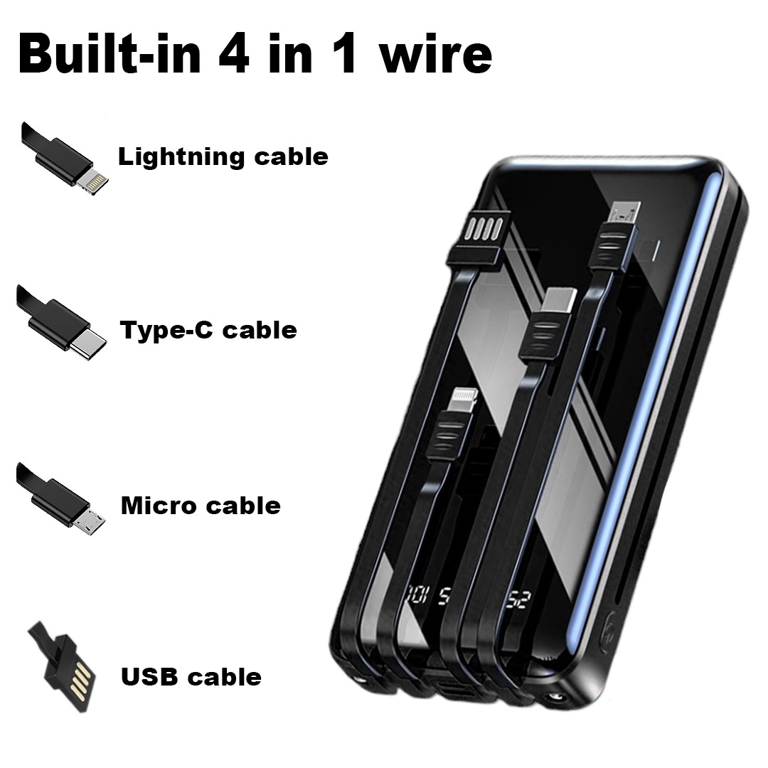- ✅ 4 In-Built Cables – No extra wires needed, charge on the go.
