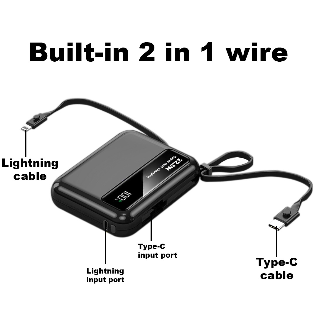 - ✅ 3-in-1 Inbuilt Cable (Micro USB / Type-C / Lightning) – Universal compatibility