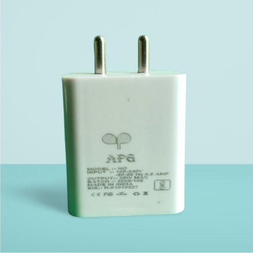 Its wide 100–240V AC input range and BIS Certification (R-91010227) ensure it meets national quality and safety standards. Manufactured in India, the APG TECH charger is compact, reliable, and compatible with smartphones, tablets, wireless earbuds, and more.