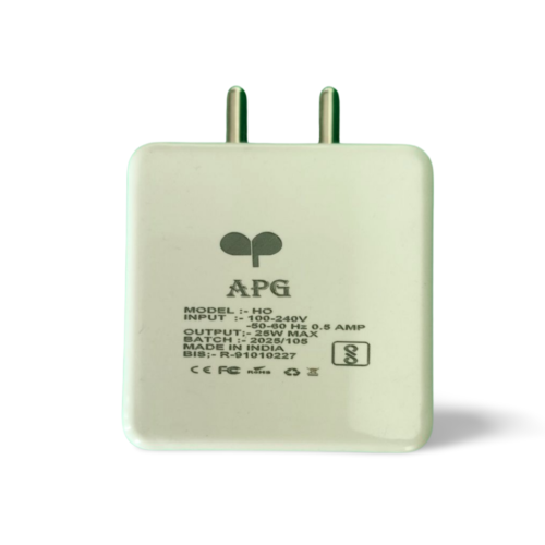 The APG WO 25W USB Wall Charger is engineered for speed, safety, and durability. With a 25W Max output, it efficiently powers smartphones, tablets, and USB-compatible gadgets. Its 100–240V input range and compact form make it ideal for travel and daily charging needs. Built to BIS (R-91010227) standards, it ensures dependable performance backed by Indian manufacturing quality.