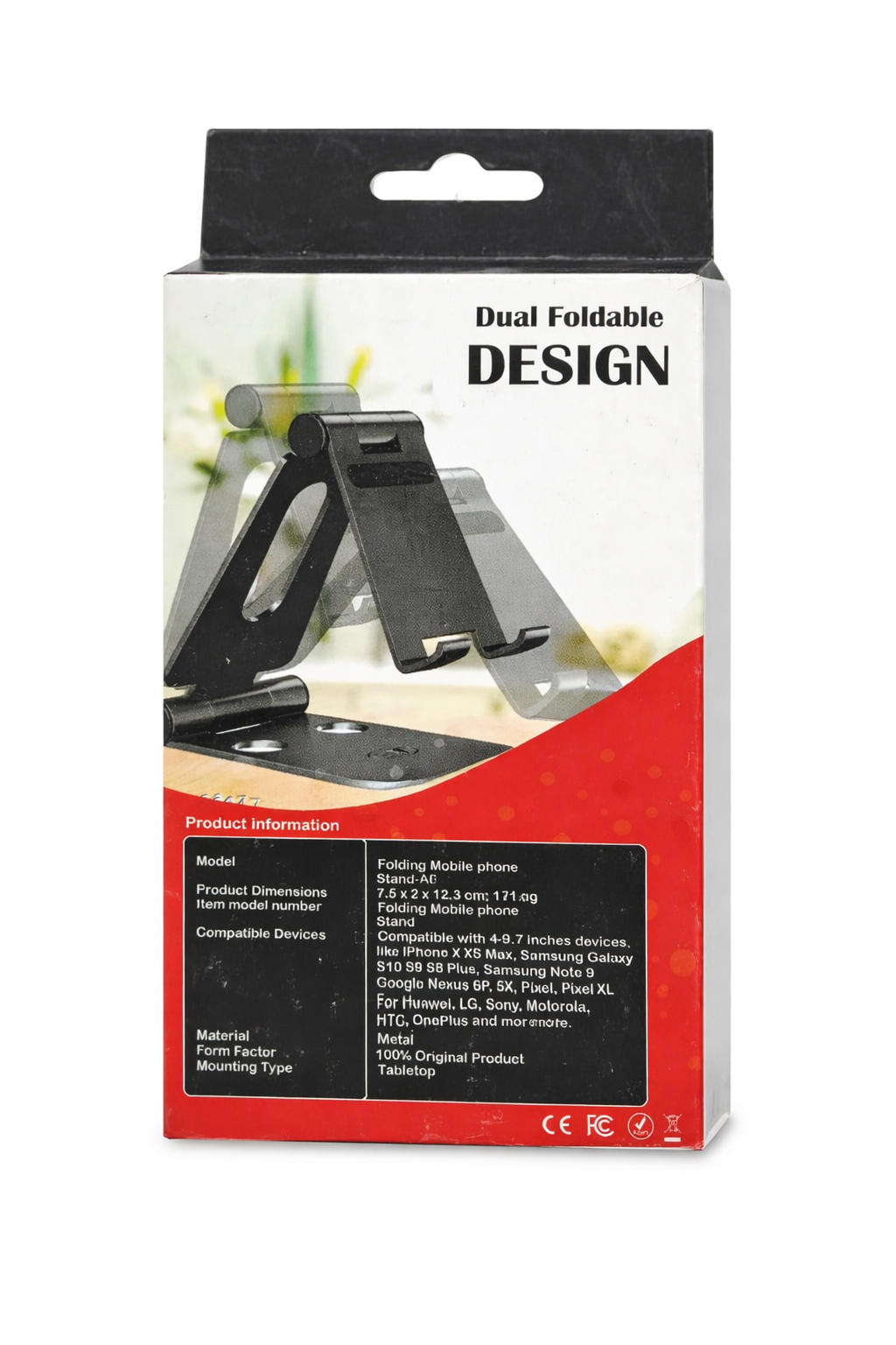 FLEXO FOLDING METAL MOBILE STAND FOR SMARTPHONE AND TABS DUAL FOLDABLE DESIGN PRODUCT INFORMATION: MODEL: FOLDING MOBILE PHONE STAND A6 COMPATIBLE DEVICES: COMPATIBLE WITH 4-9.7 INCHES DEVICES, LIKE iPHONE X XS MAX, SAMSUNG GALAXY S10 S9 S8 PLUS, SAMSUNG NOTE 9 GOOGLE NEXUS 6P, 5X, PIXEL, PIXEL XL FOR HUAWEI, LG, SONY, MOTOROLA, HTC, ONE PLUS AND MORE METAL. 100% ORIGINAL PRODUCT